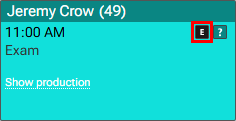 When an eligibility verification expires at the end of the month, the “E” icon (in the corresponding patient’s record and on that patient’s appointment) changes to black to indicate that the eligibility needs to be checked again because it has expired.