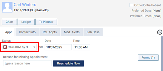 There is now a “Canceled by Office” appointment status, which you can assign to an appointment when someone in your office cancels that appointment.