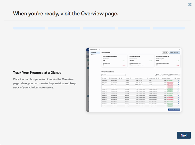 To help you get started with Voice Notes, an onboarding tool is available. Before you use Voice Notes, complete the onboarding steps.