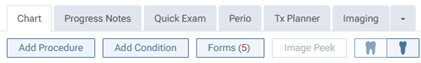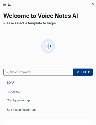 With the Chart, Progress Notes, Quick Exam, or Tx Planner tab of a patient’s clinical record selected, click the Voice Notes button.