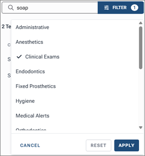 - To remove all category filters, click Filter to view the menu, click Reset, and then click Cancel.
