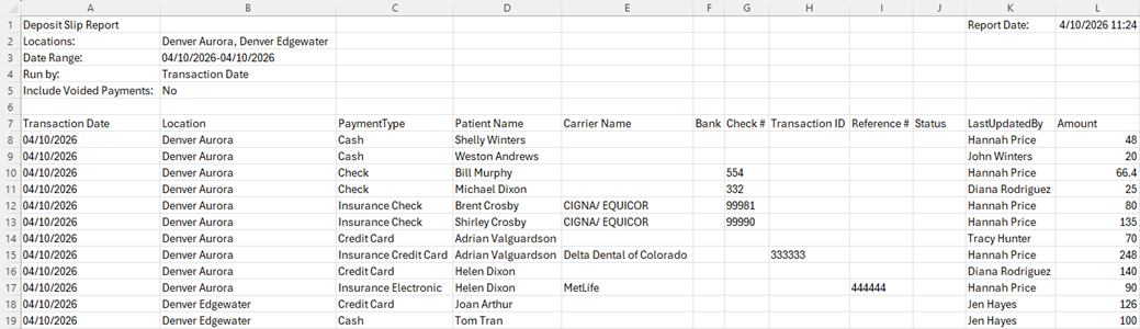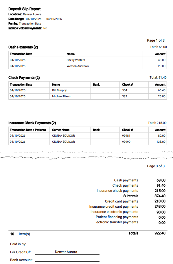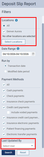 You can now filter the deposit slip by location and by user so you can have more control over what appears on the deposit slip and research payment discrepancies.