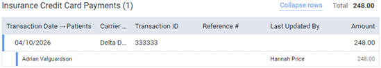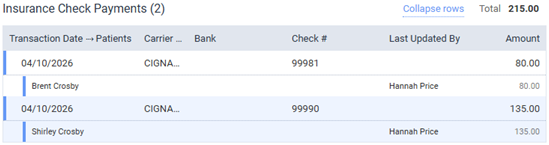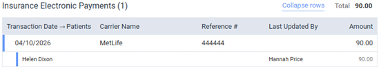 You can still expand or collapse all payment rows in certain sections, click the Expand rows link or the Collapse rows link, respectively.