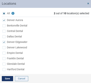 - To include all locations, select the All checkbox.