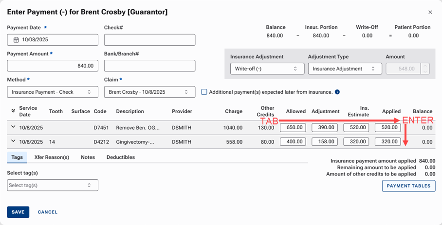 When you are entering an insurance payment, you can now use the Enter key to navigate to the next row in the list of procedures for the selected claim.