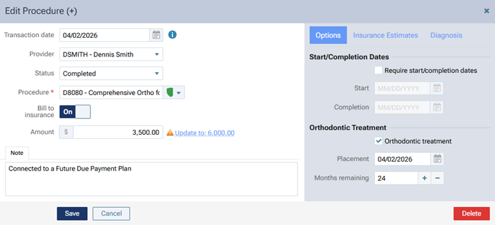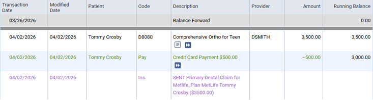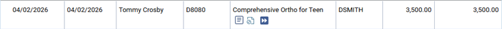 1. On the patient’s Ledger page, click the ortho procedure code (such as D8080).