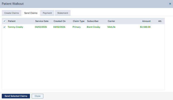 6. On the Send Claims tab, select the claim you created in the previous step, and then click Send Selected Claims.