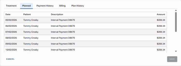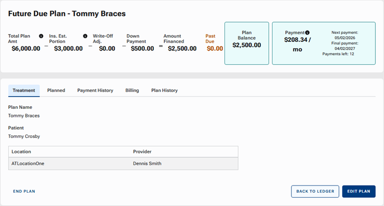 From a patient’s ledger, you can access only the patient’s future due payment plans.