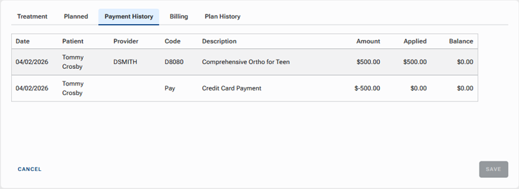 Future due payment plans introduce a streamlined way for practices to schedule and collect patient payments over time with improved accuracy, automation, and visibility. Designed specifically to support offices that manage long‑term orthodontic treatment plans, this feature allows practices to collect a down payment at plan creation and automatically charge future‑dated monthly payments throughout the duration of treatment. All payments post correctly to the ledger, and credits apply to the correct patient account without manual effort. This process utilizes Dentrix Ascend Pay to securely charge a credit card on file, ensuring reliable and automated payment collection.