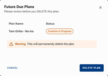 2. Click the trash can icon of a plan with a “Creation In Progress” status.