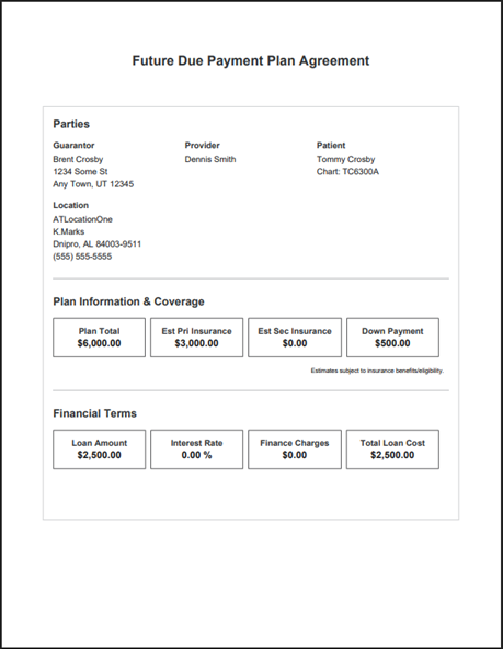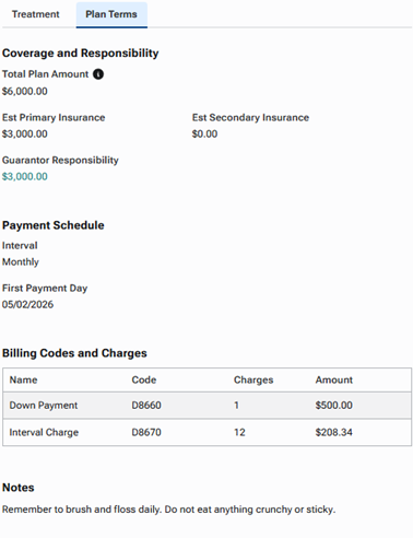 - Plan Name – Enter a name to identify the plan in Dentrix Ascend, such as on the Future Due Payment Plans dashboard.