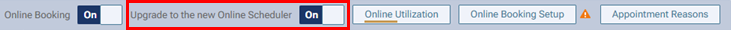 If your organization did use the legacy online booking service prior to April 22, 2026, your locations are still using the legacy online booking service (the Online Booking switch is still available and turned On). To upgrade to the new online scheduler, you must turn on the Upgrade to the new Online Scheduler switch and perform other configuration steps. Do the following: