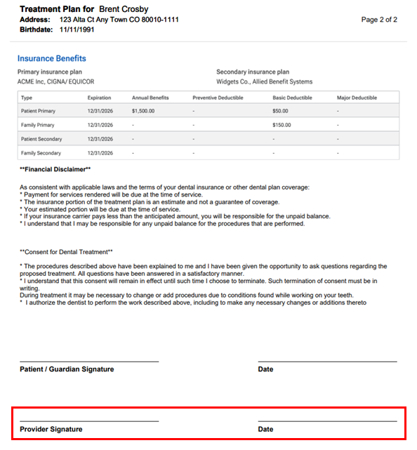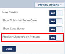 On the menu, a Provider Signature on Printout option has been added. With the switch set to Yes, a line for a provider’s signature and a date appears on the printout. With the switch set to No, a line for a provider’s signature and a date does not appear on the printout.