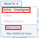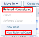 To add referred treatment to a new referred case, select the unassigned, referred procedures, expand the Move To menu, and then select New Referred Case.