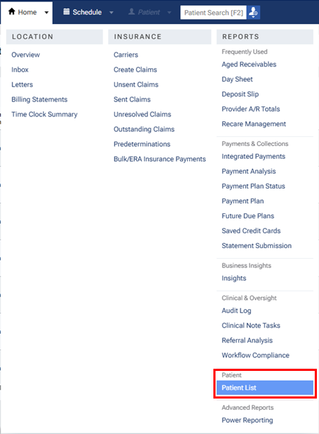 This report provides a flexible way to build patient lists based on location, visit history, demographics, and billing details. With this report, you do not need to use Power Reporting for routine list building, such as creating demographic lists, building outreach lists, segmenting orthodontia patients, or running race and ethnicity lists for compliance needs.