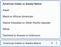 Race – To include patients of a specific race, select that race on the list. Note: To remove the selected race, click its X.