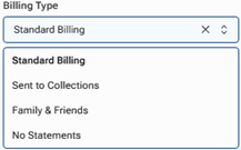 Billing Type – To include patients with a specific billing type, select that billing type on the list. Note: To remove the selected billing type, click its X.