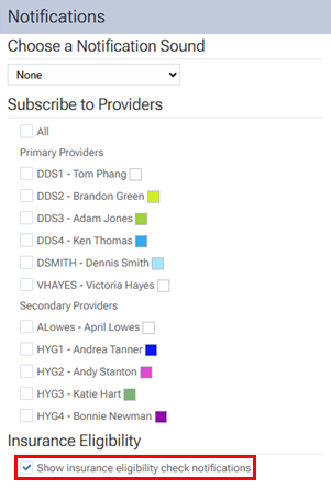 2. Select the Show insurance eligibility check notifications checkbox.