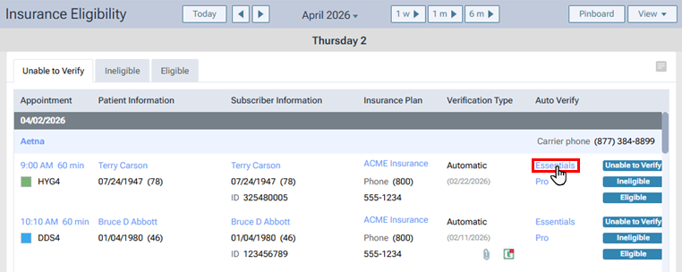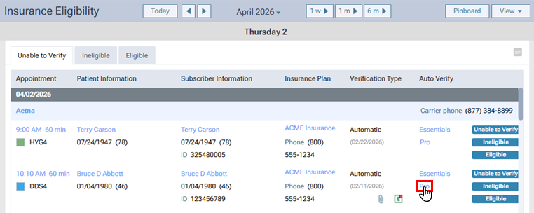 1. On the Schedule menu, select Insurance Eligibility.