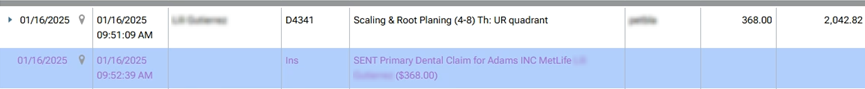A claim was sent, and then a zero-dollar insurance payment was entered.