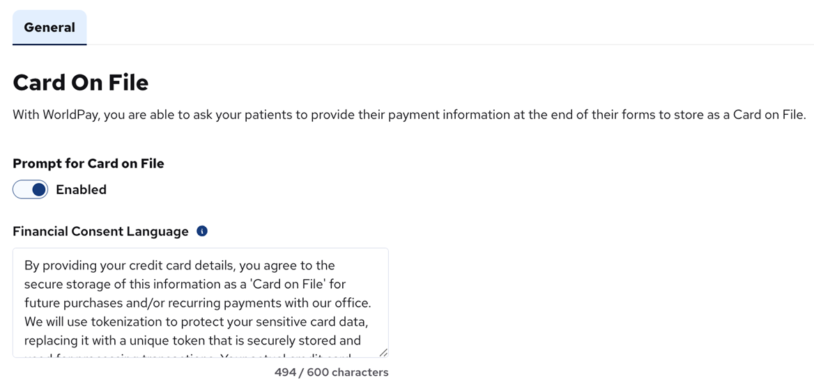 3. You can also customize the Financial Consent Language as needed. This is the text of the “Financial Consent” message that appears before the user enters his/her credit card information.