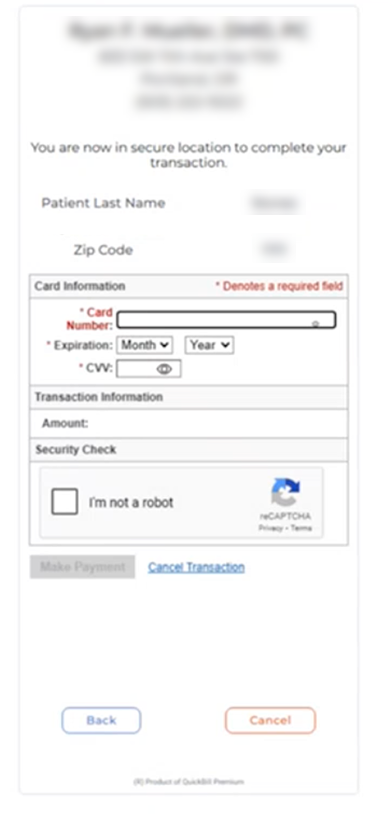 4. Specify the card information, complete the security check, and then click Make Payment.