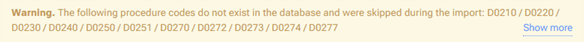 Note: If any procedures exist in the .csv file but not in your database, a yellow warning message appears and lists those procedures.