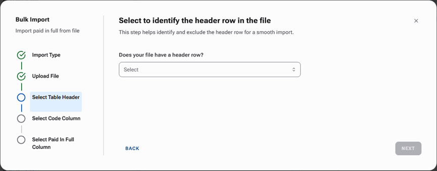 Select Yes or No to indicate whether your .csv file has a header row or not.