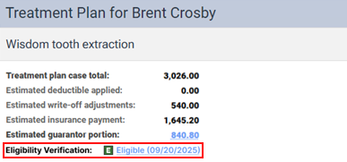 While presenting a patient’s treatment plan, you can now quickly view the patient’s eligibility status and open the corresponding eligibility document.